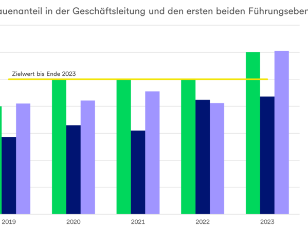 51,9 % Frauenquote in den Führungsebenen unterhalb der Geschäftsleitung (Vorjahr 41,8 %)