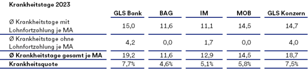 In 2023 hatten wir konzernweit eine Krankheitsquote von 7,7 Prozent. Wie sich diese zusammensetzt, zeigt die Grafik.