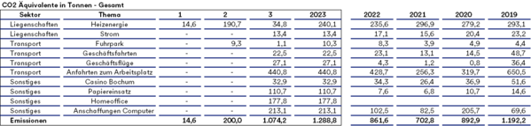 Die Emissionen der konsolidierten Wind- und Solarparks fallen in die Scope 3 Kategorie der GLS BAG/EAG und sind in Berichtsjahr 2023 nicht berücksichtigt.