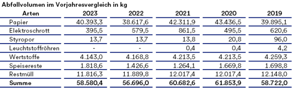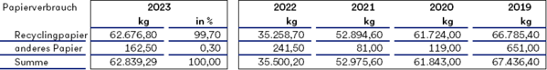 In den Tabellen* listen wir unseren Papierverbrauch sowie unsere Abfälle auf.
